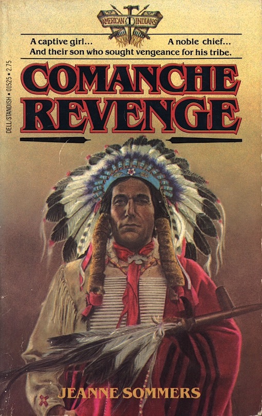 Comanche Revenge by Jeanne Sommers, Volume 1 in the American Indians series, was published in August, 1981, by Dell Standish. The cover art is by James Mathewuse. Jeanne Sommers is a pseudonym of Barry Myers, who also wrote under the names Lee Davis Willoughby and Jonathan Scofield. Myers' credits include several volumes in Dell's The Making of America and Freedom Fighter historical series, and two volumes in the Preacher's Law western series. Myers also wrote several standalone historical novels.