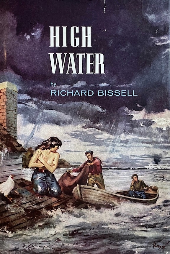 High Water was published in hardcover by Little Brown & Company in 1954. The jacket art depicts a rescue taking place on the rooftop of a flooded